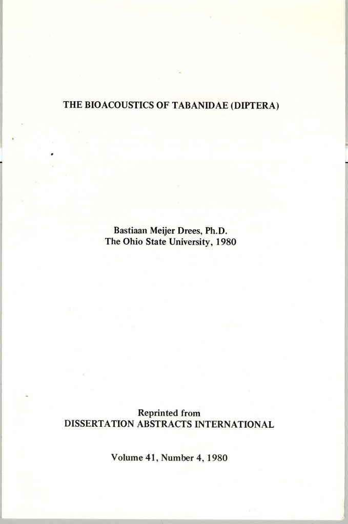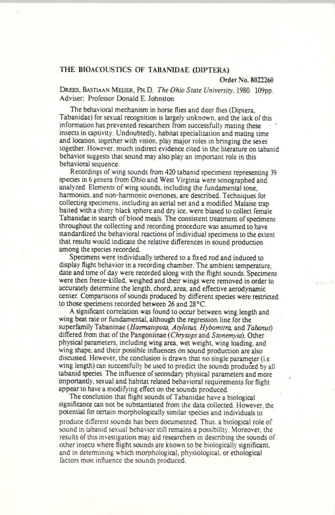 The Bioacoustics Of Tabanidae (Diptera)(Drees, 1980)