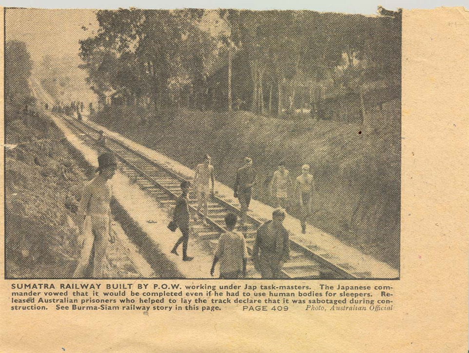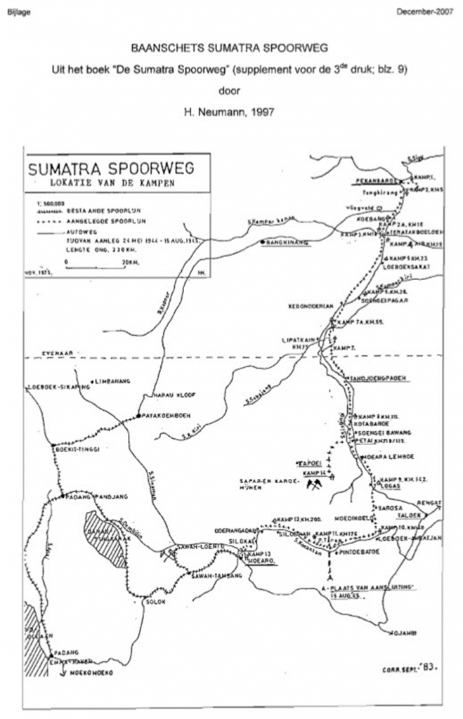 In Pakanbaru, we were made available to the Manchukuo Railway Co. (the leaders of this company were picked up as war criminals right after Japan’s capitulation; this ending already gives you an idea of what was awaiting us in Pakanbaru) (what is meant here is the [South] Manchuria Railway Company (MRC), the umbrella organization of which the military organization SARC (Southern Army Railway Corps) is a part. The SARC is responsible for the construction of the railway. The immediate commander in Pakanbaru, Captain Miyasaki Ryohei, was sentenced to death on May 31, 1948, HvdB).