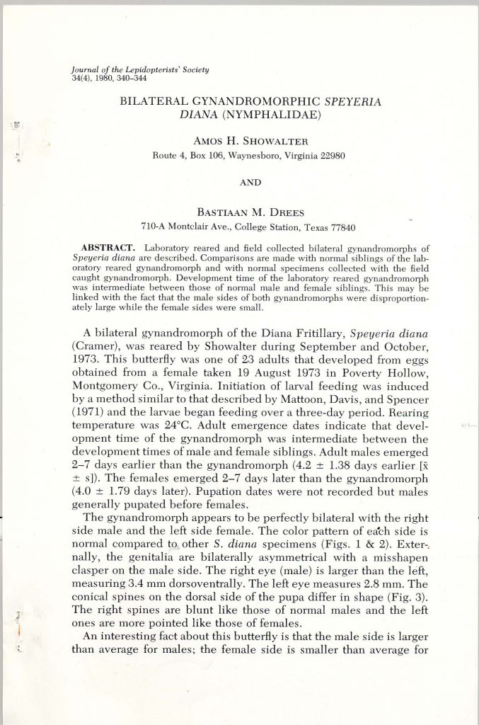 Bilateral Gynandromorphic Speyeria diana (Showalter & Drees, 1980)