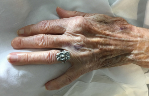 A hand can tell you so much about a life well lived. My mom was born on Aug. 10, 1925 and recently passed away on June 18, 2016 at the age of 90. Her long life led her from the Netherlands to Indonesia (the Dutch East Indies), back to the Netherlands (Holland) where she survived World War II, and then to Texas where she lived in Dallas and later Austin. Her hand shows the wrinkles and arthritis of age and years of weeding in her landscape during her years living in the “Lake House” (3910 Conejo Circle) in Austin. Her middle finger is missing the tip and nail from a wind gust slamming the door shut while her hand was in the door frame.